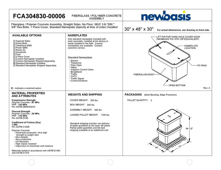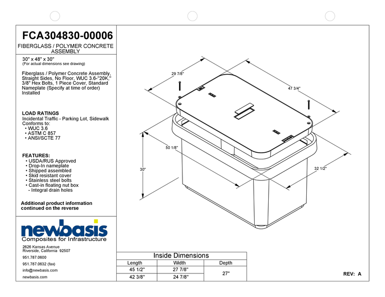 (Part Number – FCA304830-h) 30” x 48” x 30” – 30 x 48 x 30 – 30x48x30 – Straight Polymer Concrete Assembly – OSP Handholes – Outside Plant Handholes – Straight Fiberglass Assembly – Electrical Pull Boxes – Underground Enclosures – Underground Vaults Vaults- Build America Buy America Vaults- Handholes- BABA Compliant Vaults- BABA Compliant Handholes- Made in America Vaults- Made in American Handholes- Made in USA Vaults- Made in USA Handholes – Fiber Vaults – Fiber Handholes – NewBasis
