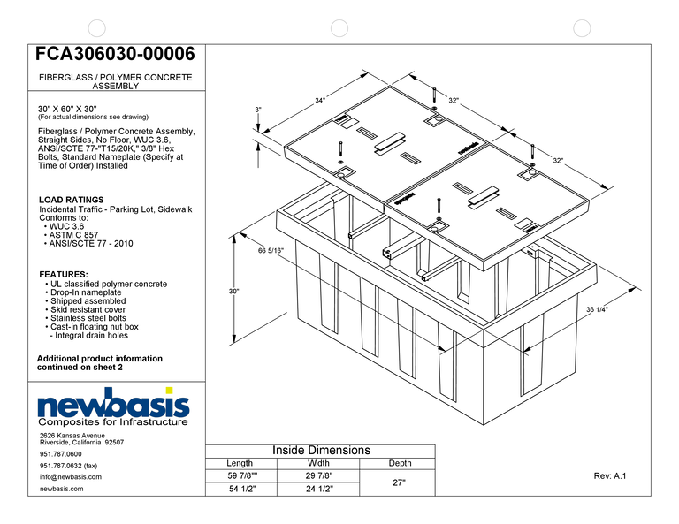(Part Number – FCA306030) 30” x 60” x 30” – 30 x 60 x 30 – 30x60x30 – Straight Polymer Concrete Assembly – OSP Vaults – Outside Plant Vaults – Straight Fiberglass Assembly – Electrical Pull Boxes – Underground Enclosures – Underground Vaults Vaults- Build America Buy America Vaults- Handholes- BABA Compliant Vaults- BABA Compliant Handholes- Made in America Vaults- Made in American Handholes- Made in USA Vaults- Made in USA Handholes – Fiber Vaults – Fiber Handholes – NewBasis