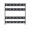 This LAN station includes three 24 deep shelves, one 30 deep shelf, two side frame kits, eight shelf support kits, and four 72 back plates. Each shelf adjusts in 1 increments.